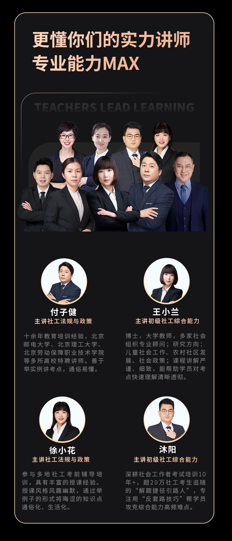 深耕社会工作者考试培训10年+,全网超20万社工考生追随的“解题捷径引路人”,专注用“反套路技巧”帮学员攻克综合能力高频难点,堪称社工备考界的效率天花板。 核心教学特色:解题有“公式”、考点无废话、疑难变通俗。 授课风格:幽默得像听段子,认真得只抓考点