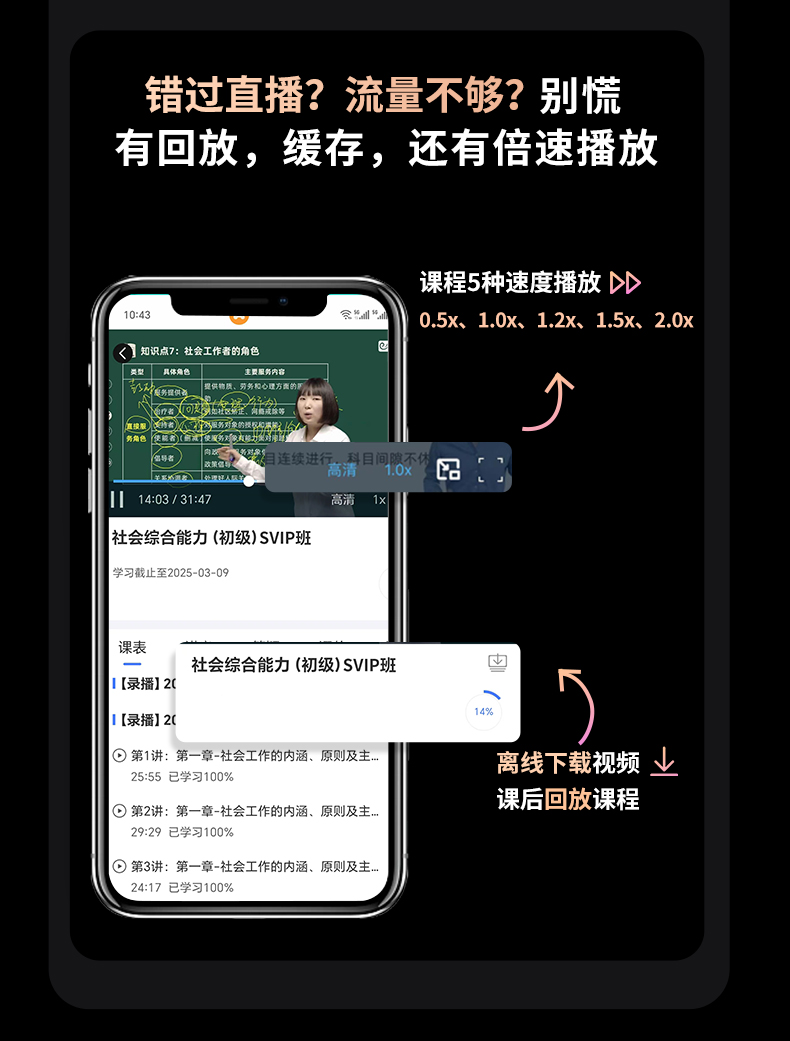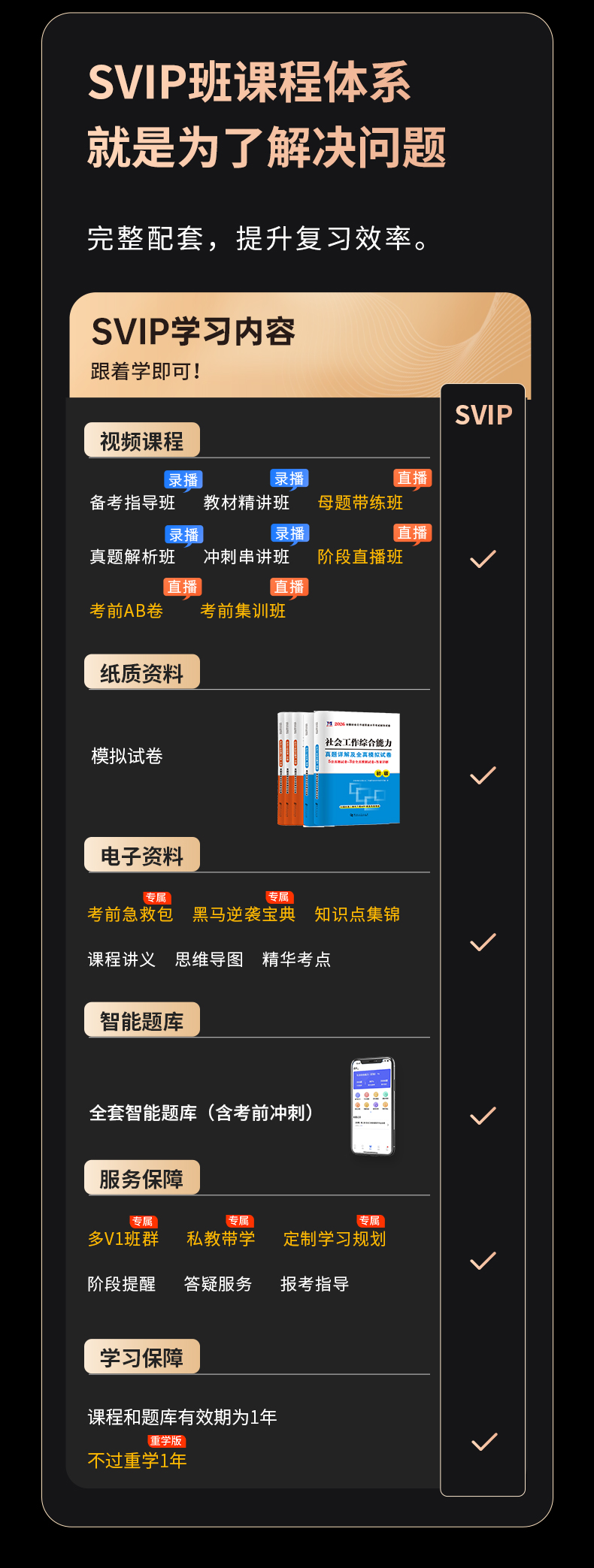 本课程为社会综合能力(初级)SVIP班-不过重学版,课程规划为四阶8班次,2026年新课持续更新,具体见如下详情: