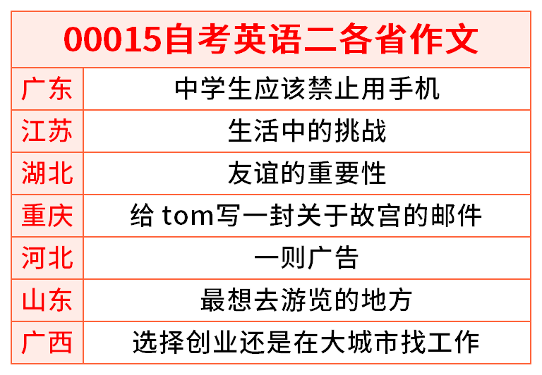 由于00015自考英语二各省自行出题,给大家汇总了部分省份自考英语二作文的题目,同学们可以多看看出题方向!