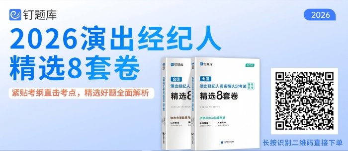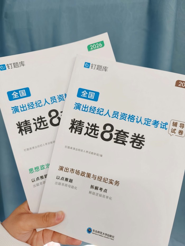 经过钉题库演出经纪人教研团队不懈努力与精心打磨,2026新大纲《演出经纪人精选8套卷》已全部下印完成,包括《思想政治与法律基础》《演出市场政策与经纪实务》全套2本。精心编著,紧扣2026 最新考纲,应试干货加满!